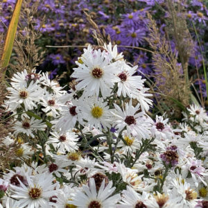 Aster novae-angliae 'Herbstschnee'Weiße Raublatt-Aster